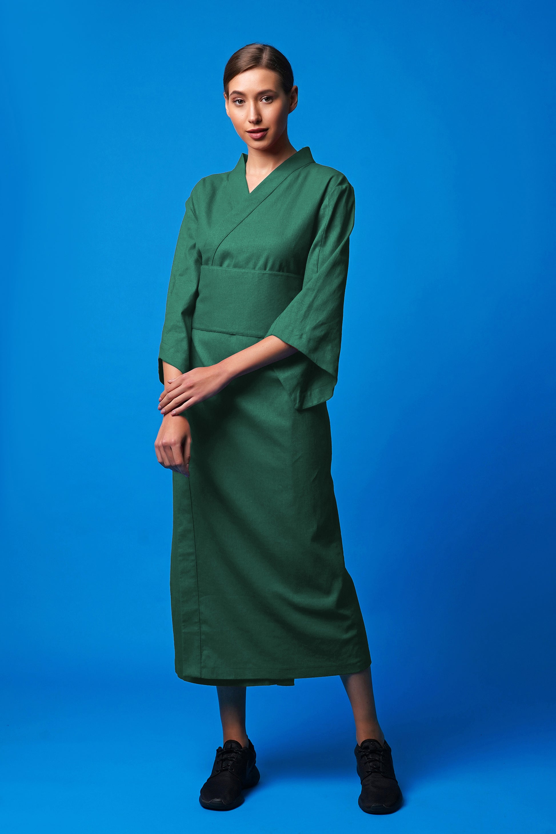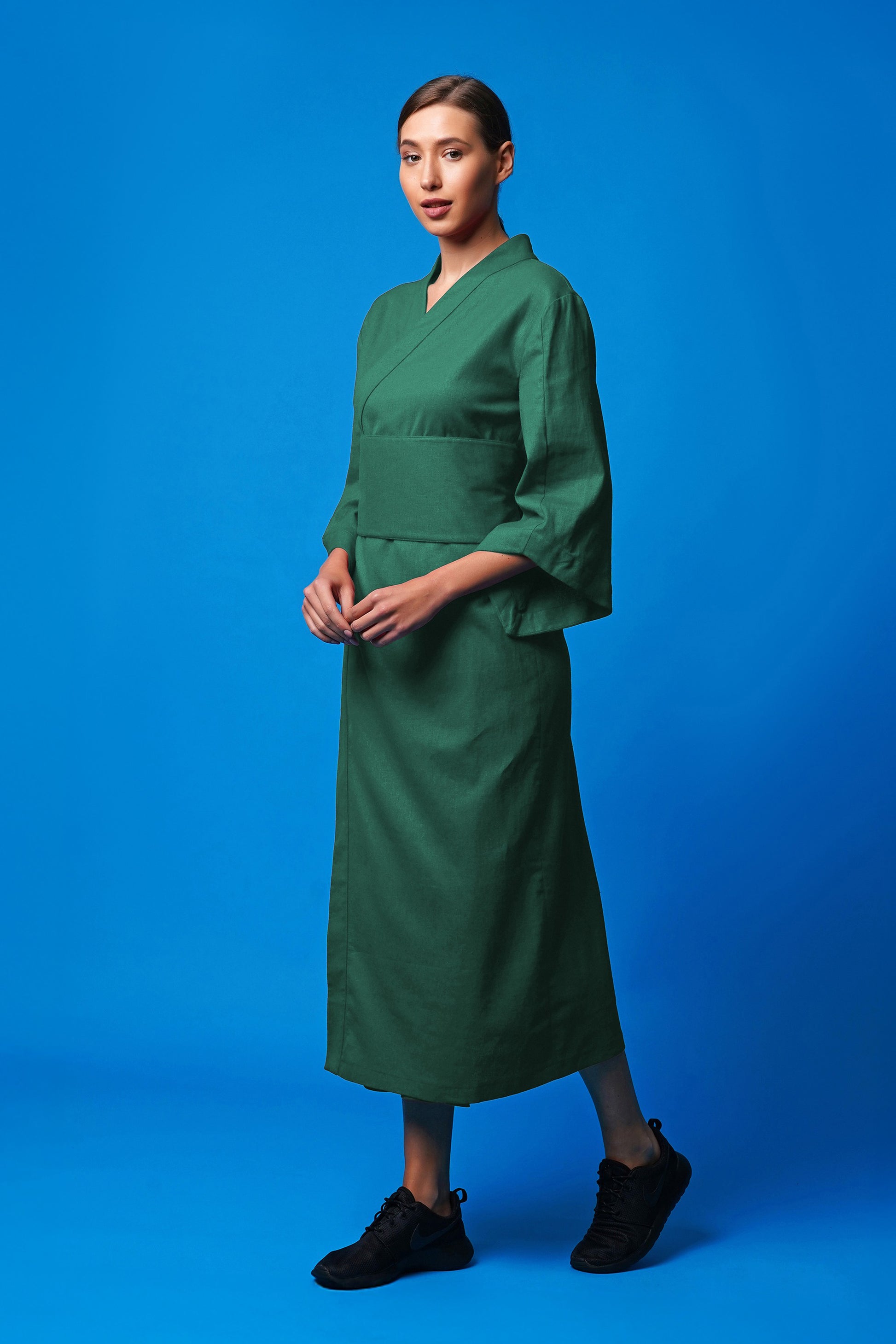 Green linen wrap dress