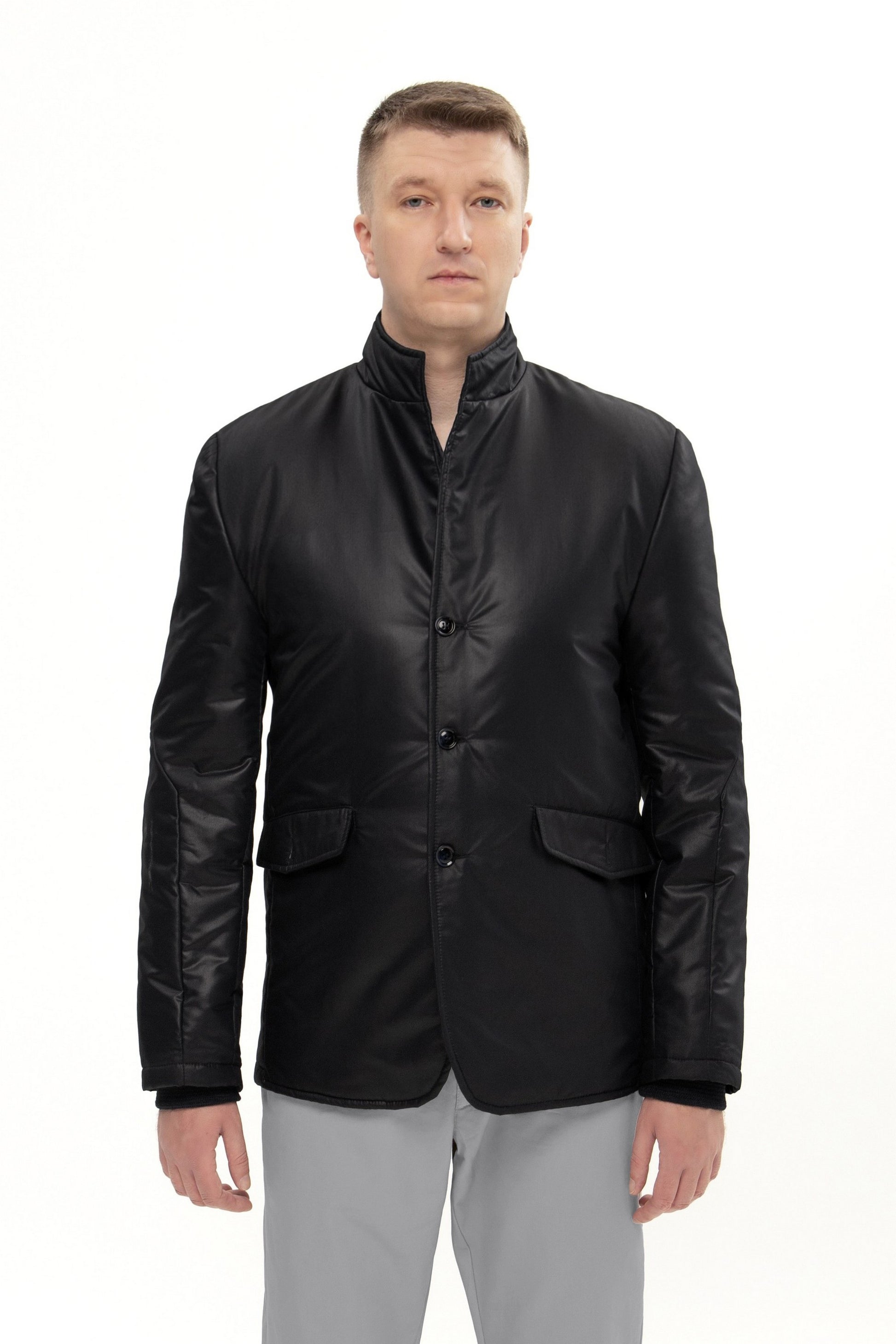 Men’s black insulated jacket by MERCES, crafted for comfort and style. The stand-collar design and wool-blend insulation make it ideal for fall and winter seasons, offering a sleek, smart-casual look for everyday wear or travel.